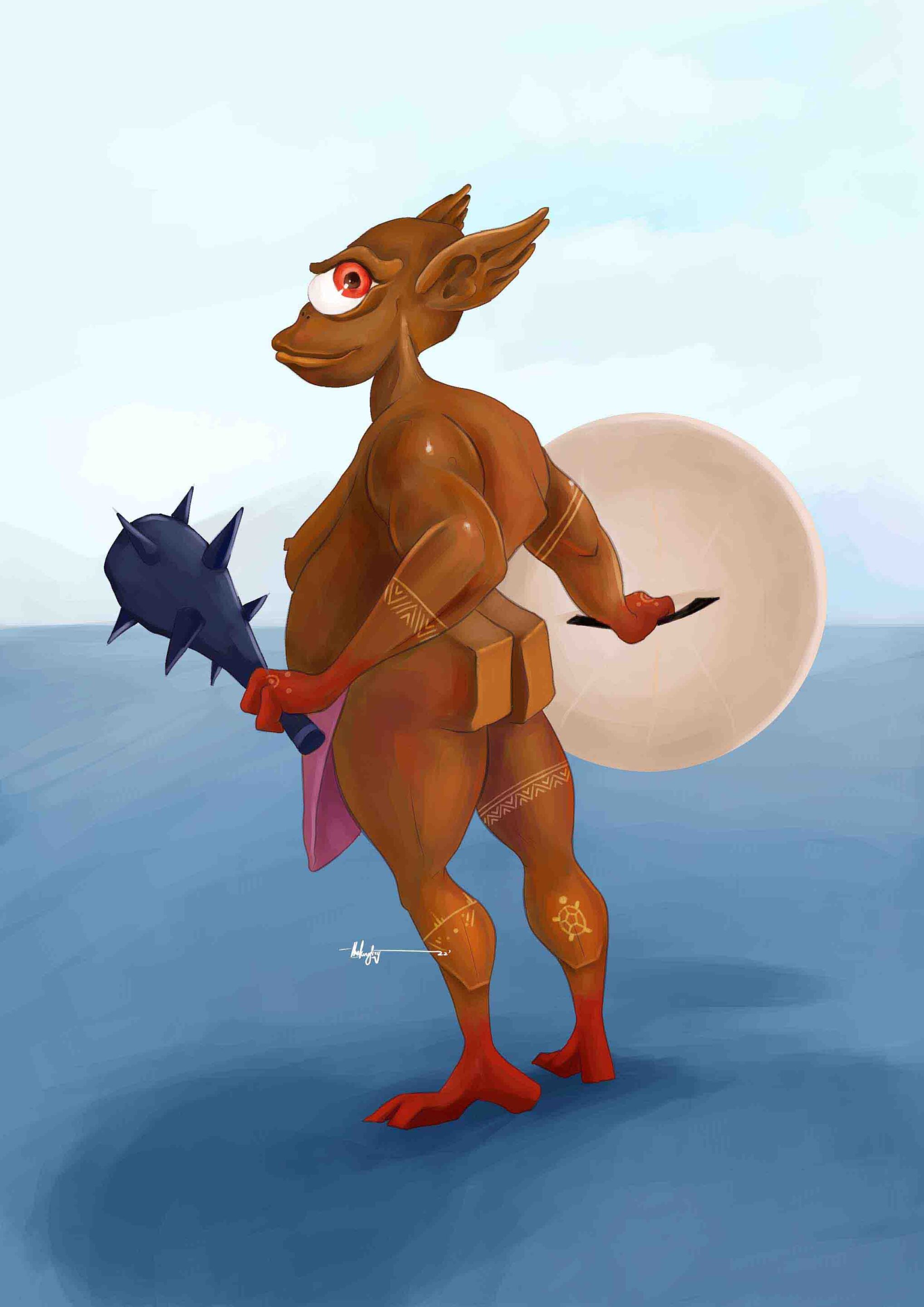 Rufus the bone is a character created with so much uniqueness, emotions, and dramatic conceptualization. He is a warrior from a troll clan. He was created for a fantasy illustration. He has so much unique abilities but most importantly, he can see your thoughts.